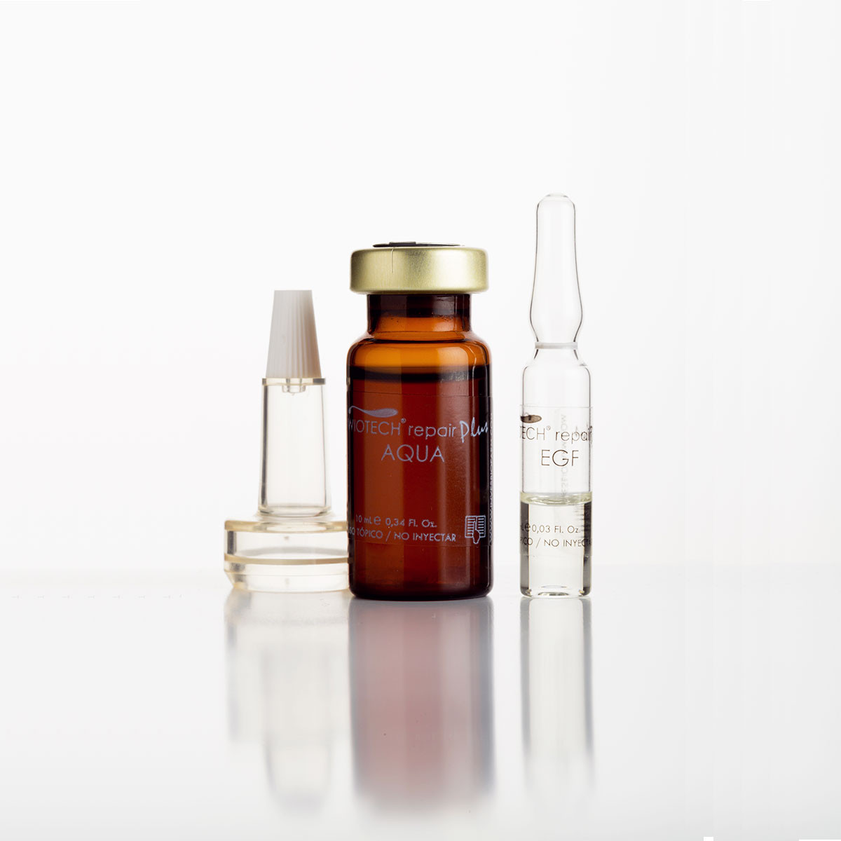 4. Aplicación tópica (sin agujas) de nuestra formula patentada: factor de crecimiento epidérmico Wiotech EGF, ácido hialurónico, Wiotech HA, y un complejo multivitamínico, Wiotech Revital. Todo este proceso se realiza con bioestimulacion y penetración intradérmica mediante mesoterapia virtual. Se recomienda unas 4 sesiones.